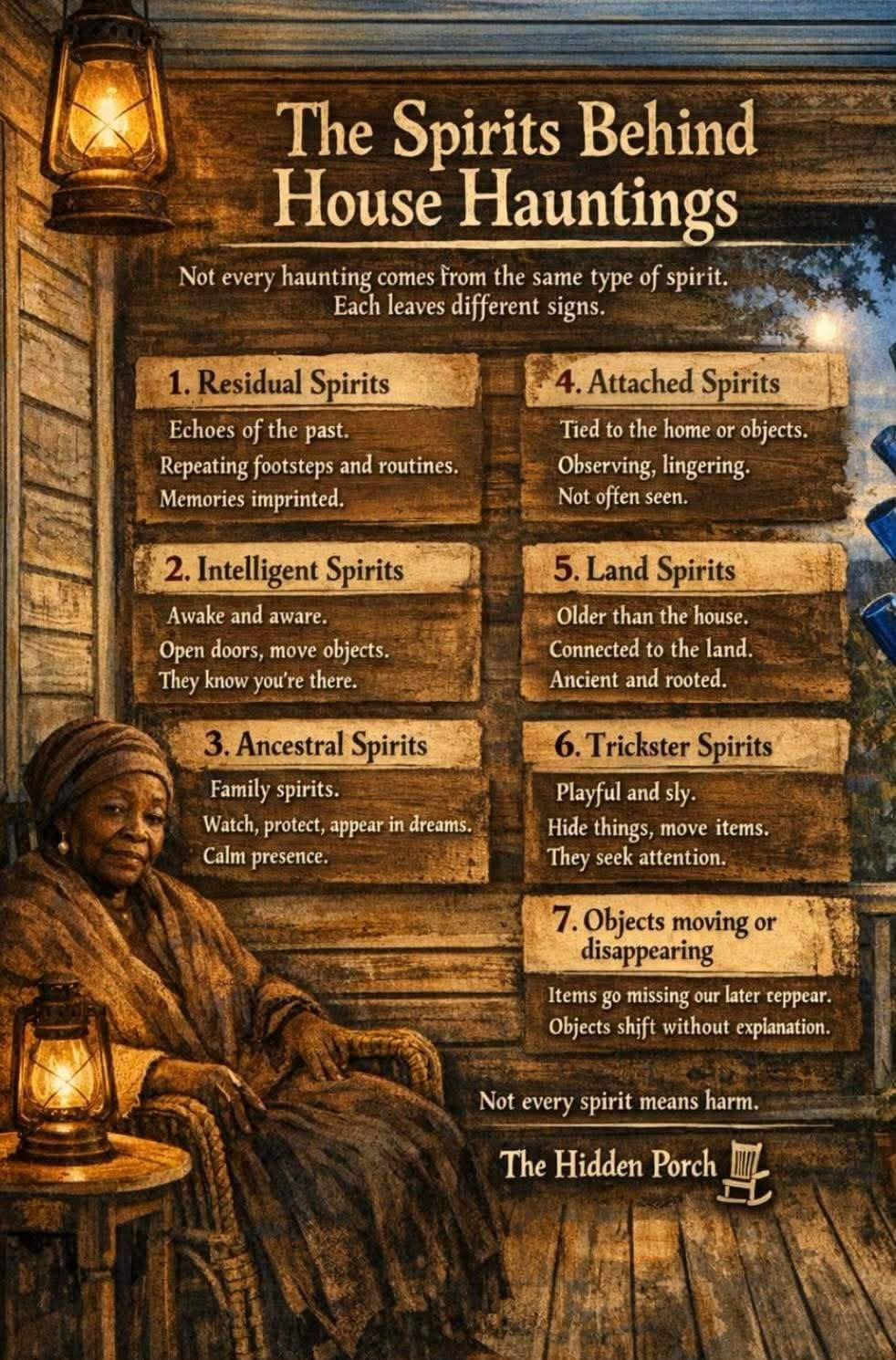 Ghosts are often considered the caretakers of the afterlife. They commonly stick around to make sure their families, friends, homes, and belongings are being taken care of.